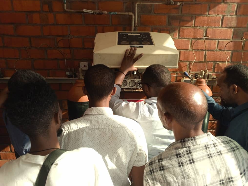 BHI Biomedical Engineer, Jonas Twizeyimana, leading practical training at the center’s on-site PSA Plant.