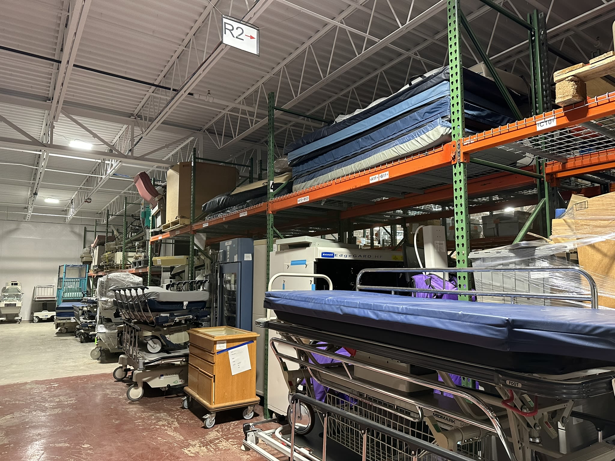 Where hospital equipment and machines are stored awaiting deployment to projects.