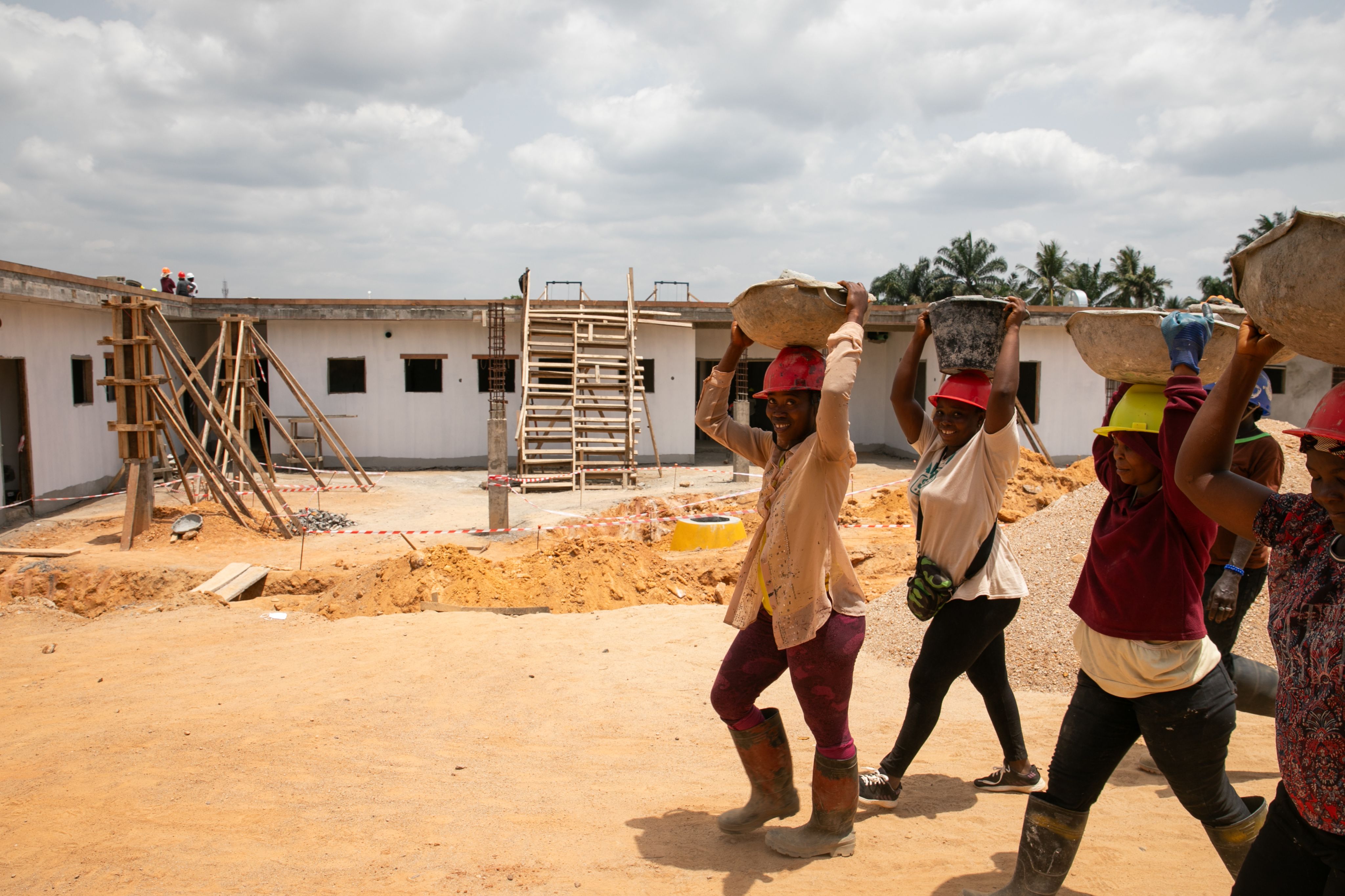 Construction crews at the Maternal Center of Excellence (MCOE) in Sierra Leone lay down 100% of the concrete foundation for the birthing center, marking a major milestone for the project.