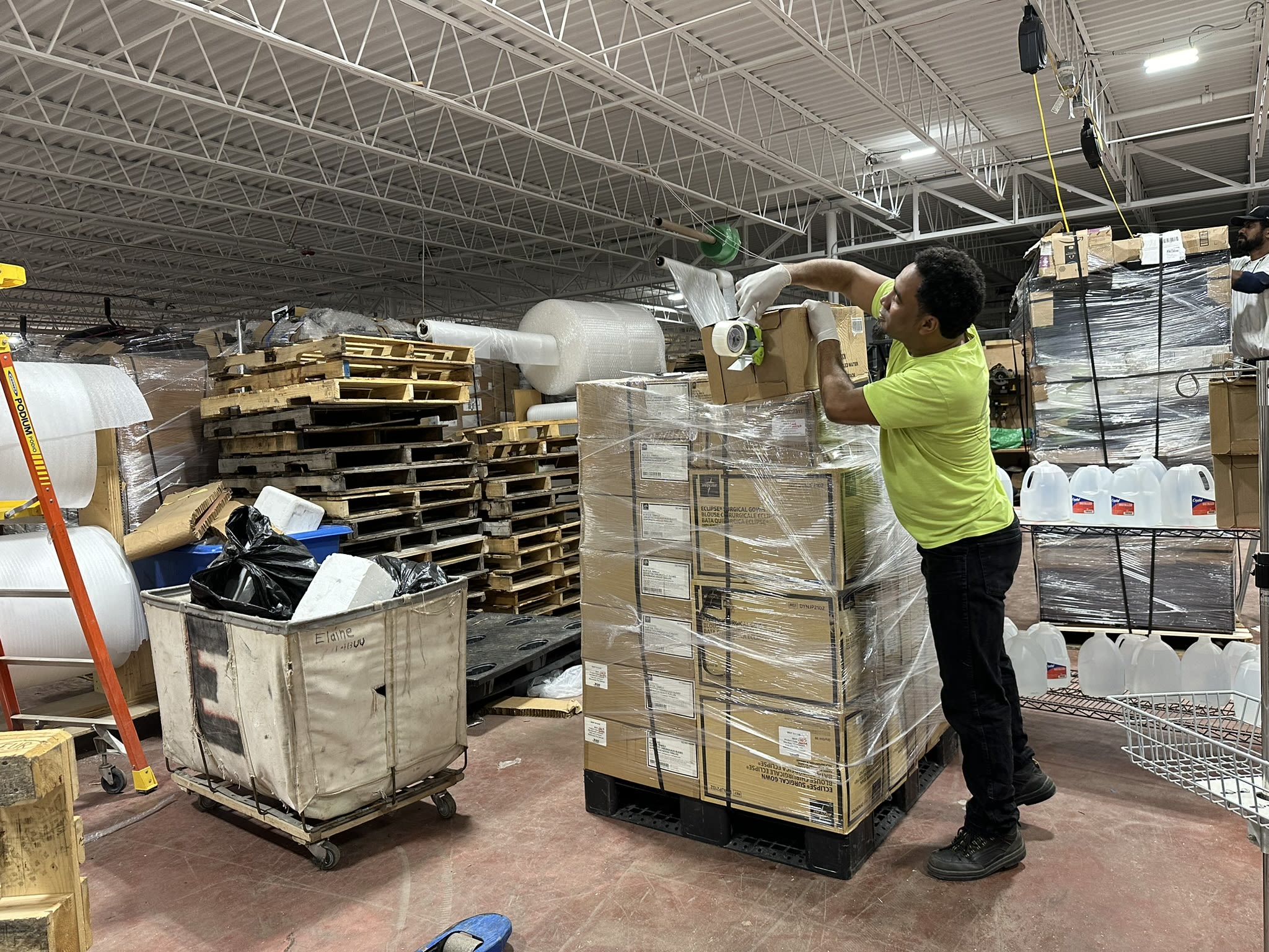 The 30,000 square foot space that stores and ships materials resourced from Boston-area hospitals, construction companies, and other industries to BHI’s many international project sites.